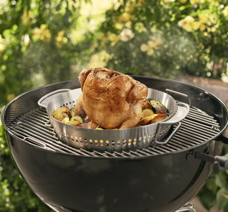 Není to jen normální stojan na pečení drůbeže. Univerzální design stojanu na drůbež Gourmet BBQ System 2v1 Vám umožňuje grilovat drůbež a zároveň přílohu ve stejnou dobu. Připravte křupavé, ale šťavnaté kuře ve středu, zatímco zeleninu připravujte okolo něj. Střed nádoby na tekutinu naplňte, abyste třeba připravili šťavnaté kuře na pivu, anebo jí odstraňte, abyste použili celou pánev pro zeleninu nebo přílohy.