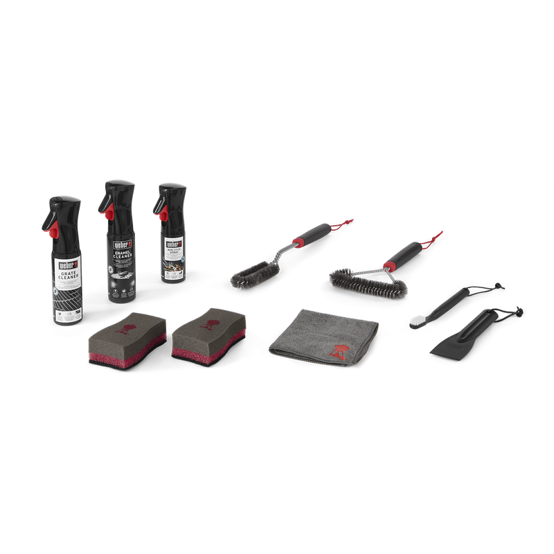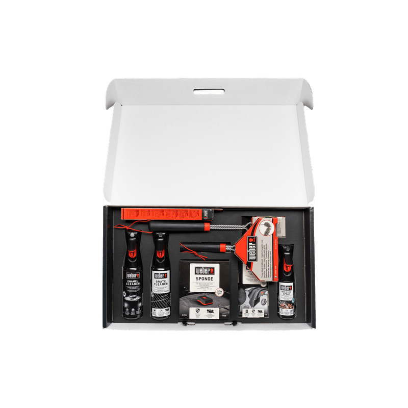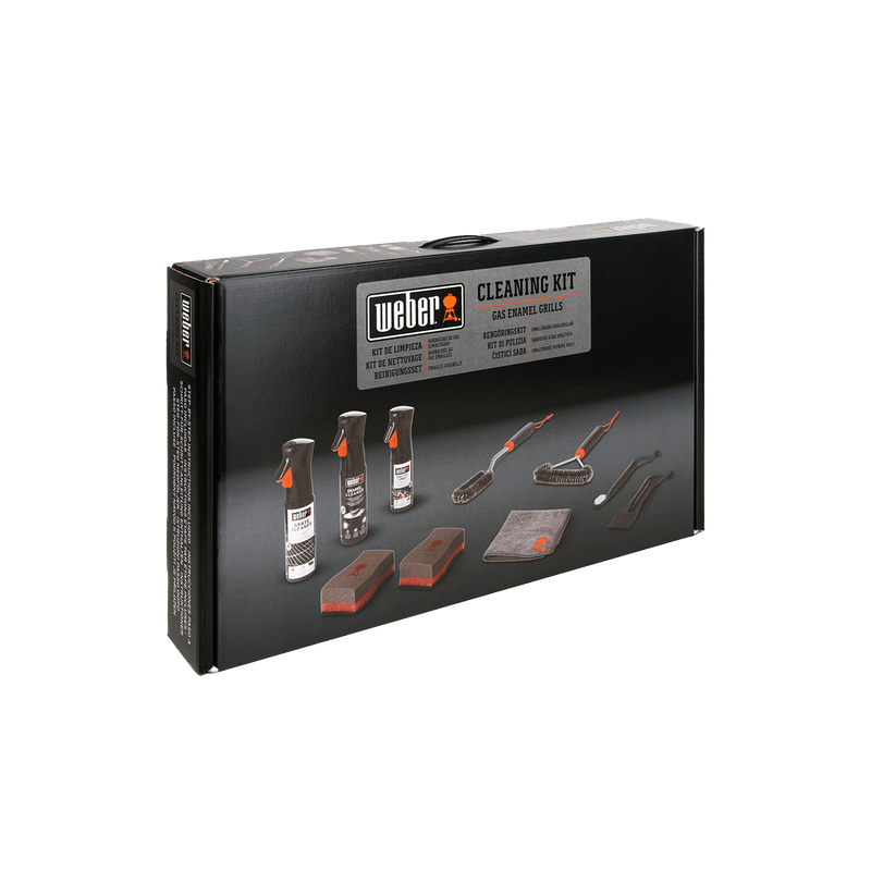 Ošetřujte svůj gril s trochou péče a lásky, a bude po mnoho sezón vypadat i grilovat jako nový. Důkladné čištění čas od času může dělat divy a zajistí nejen úžas, ale také bezpečnost a optimální rozvod tepla. V sadě na čištění speciálně vyráběné pro smaltované plynové grily Weber® dostanete všechny nástroje potřebné pro udržení vašeho grilu v plném lesku a funkčnosti. Obsahuje kartáče, čistící prostředky, houbičku, hadřík a sprej na promazání roštů.