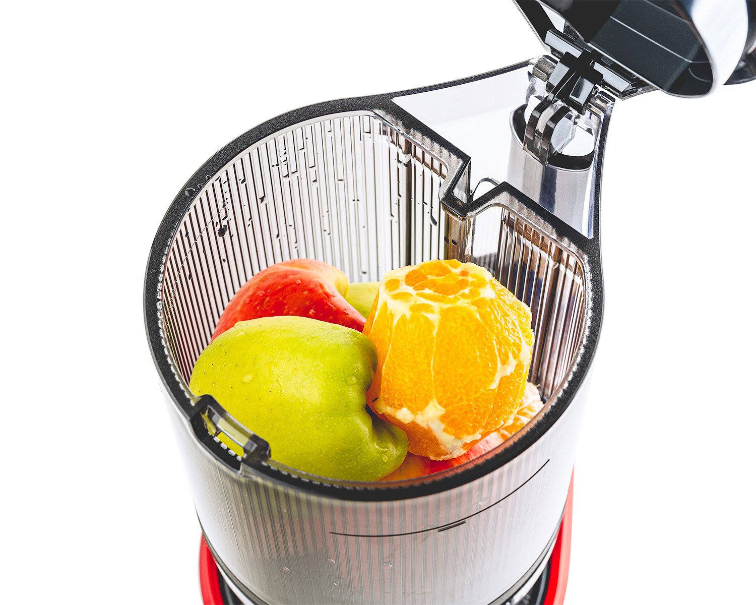 Do odšťavňovače nemusíte vhazovat a pěchovat každý kousek ovoce a zeleniny zvlášť. Naplňte předem automatickou násypku, zapněte odšťavňovač a mezitím připravujte něco jiného. Odšťavňovač si bude odebírat a zpracovávat suroviny sám. Násypka si poradí i s celými jablky, většími kusy mrkve a listovou zeleninou! Najednou pojme zhruba kilo surovin, což znamená až čtyři celá jablka.