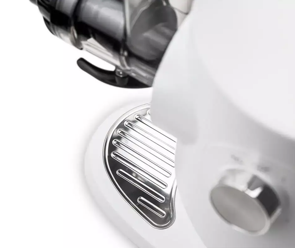 Lisovací systém je nově doplněný o extrakční čepel, která je ukrytá na jeho konci. Těsně předtím, než vylisovaný odpad opustí odšťavňovač, se čepel postará o jeho finální zpracování. Vymačká z něj poslední kapky šťávy a usnadní jeho odchod. Odšťavňovač se tak nehltí, pohodlně stíhá, a zejména má vyšší výtěžnost než odšťavňovače bez čepele.
