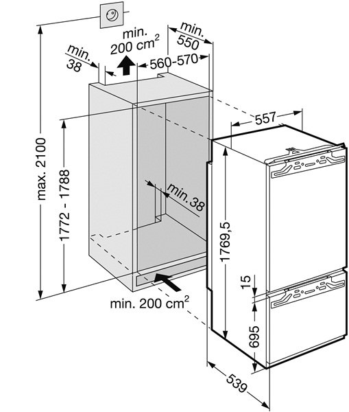 - Rozměry výklenku: 177.2 ÷ 178.8/56 ÷ 57/55 cm cm