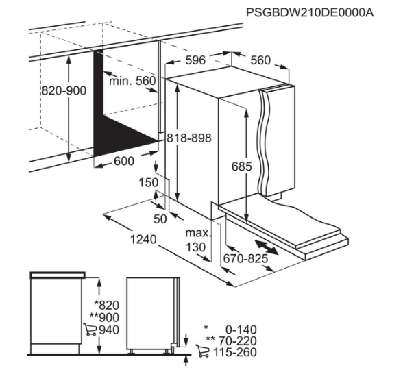 • Rozměry pro vestavbu 820-900x600x560 mm