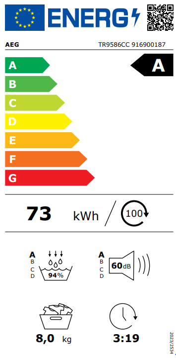 | Spotř. energie / rok: | 73 na 100 cyklů kWh |